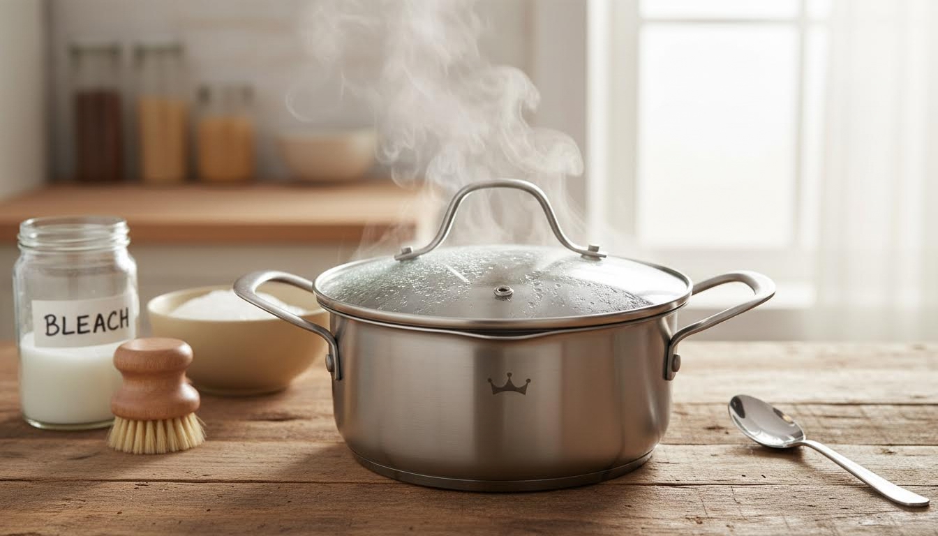 Одна ложка отбеливателя в кипящую воду — и кухонная крышка будто новая: жир отходит сам, хотя такой прием требует аккуратности и хорошего проветривания.